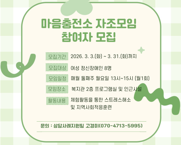 마음충전소 자조모임 참여자 모집