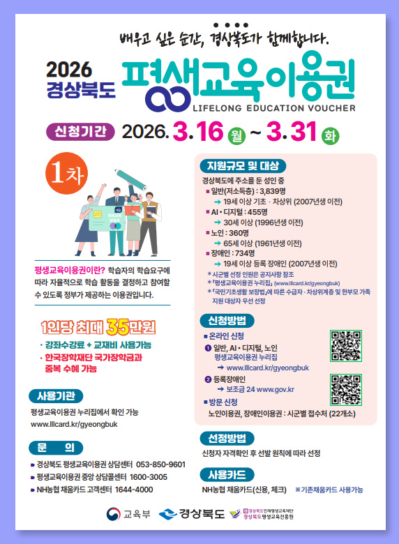 2026 경상북도 평생교육 이용권 신청 안내
