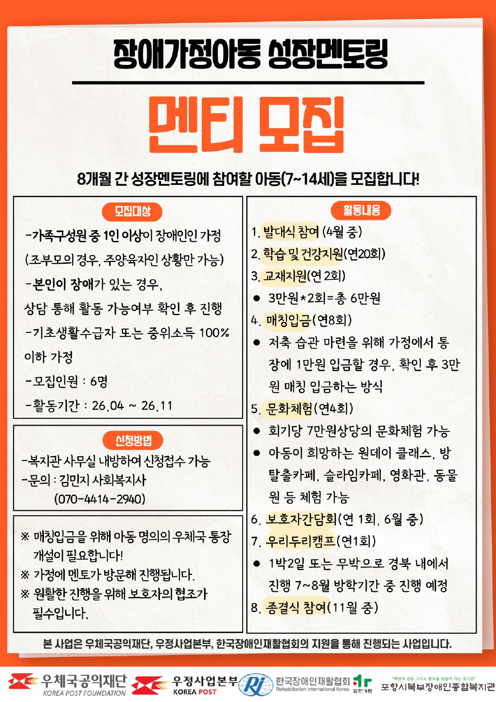 2026 장애가정아동 성장멘토링 멘티 모집