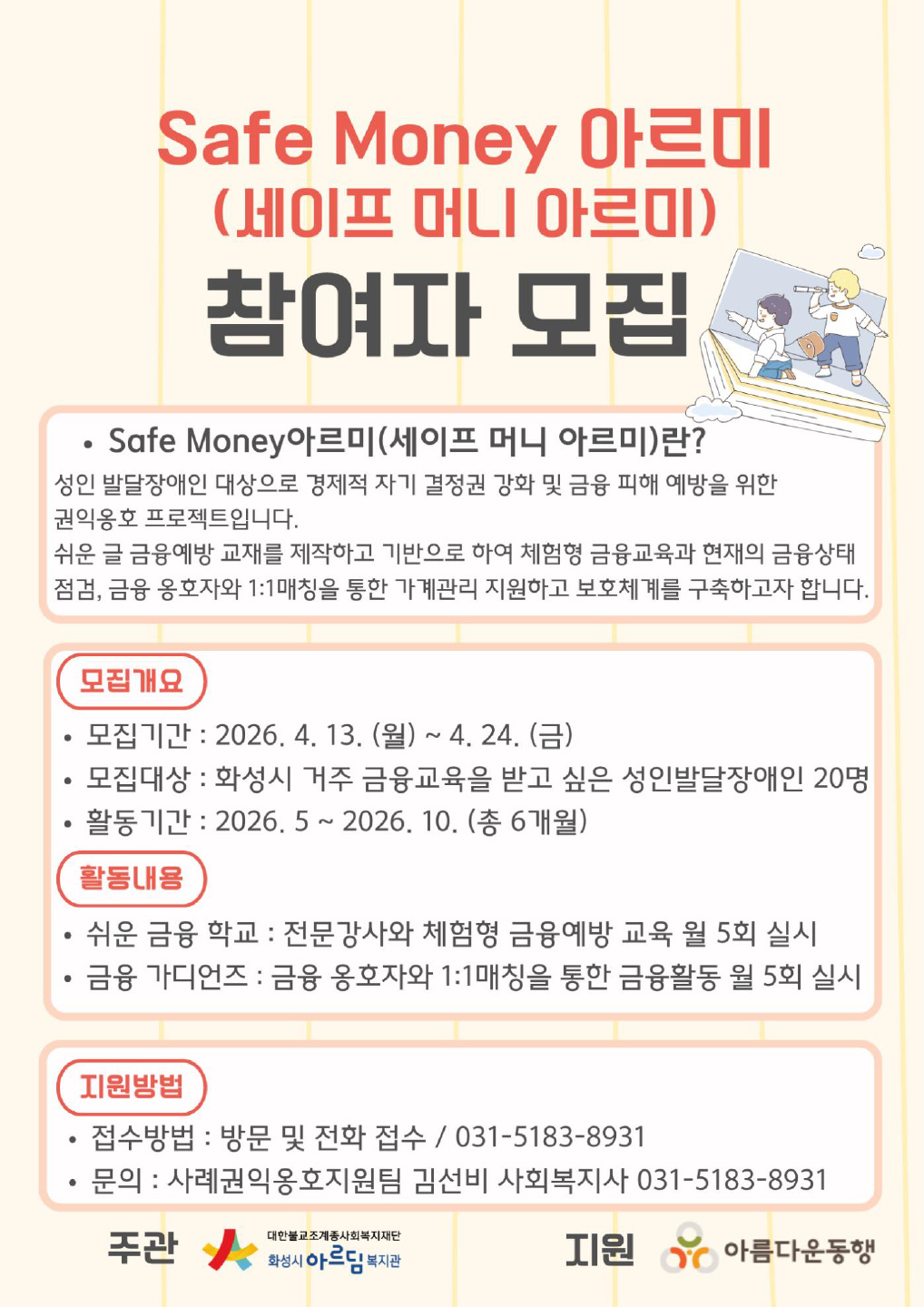 2026년 아름다운동행 NGO공모지원사업 'Safe Money 아르미' 프로그램 참여자 모집