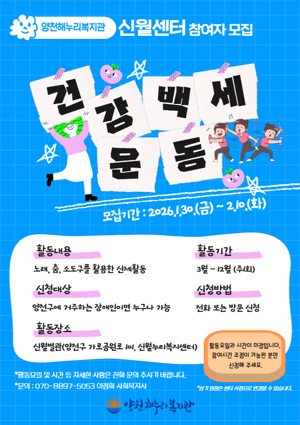 건강백세운동 참여자 모집