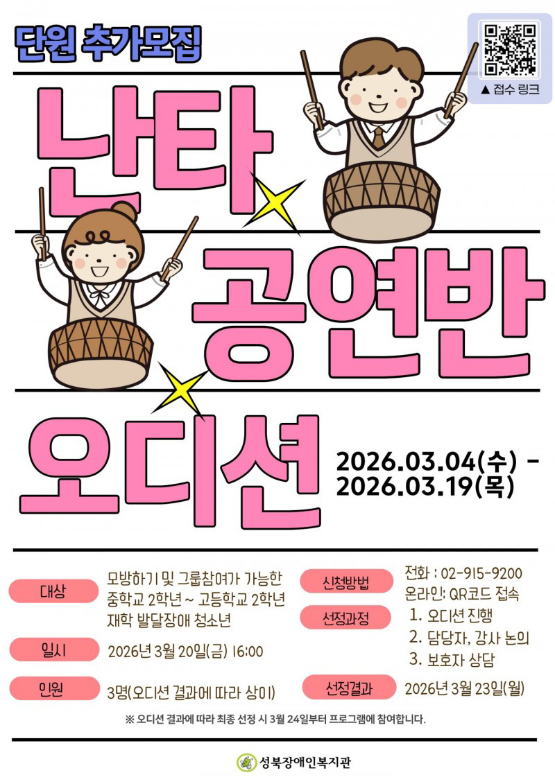 2026년 난타공연반 오디션 참가자 모집